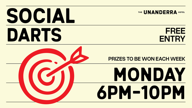 Monday Social Darts Monday nights are for darts, drinks and a bit of friendly rivalry! From 6pm - 10pm, our Function Room turns into your midweek arena; free entry, weekly spot prizes, and the Function Bar open to keep the good times rolling. Gather your mates, take aim, and make Social Darts your new ritual at Unanderra.
